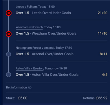 17th January RUNNING TOTAL £140.64 Kip - Bet 1 £5.00 BTTS LOSER!!! To WIn - £55.79 Kip - Bet 2 £5.00 Team Over 1.5 LOSER!!! To WIn - £66.92